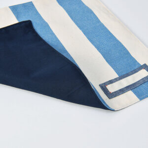 1点目の生地と上下を入れ替え、上部に「9045/ヘアラインストライプ」、下部には「9073/帆布11号/ダークブルー」を配置されています。