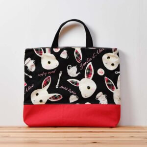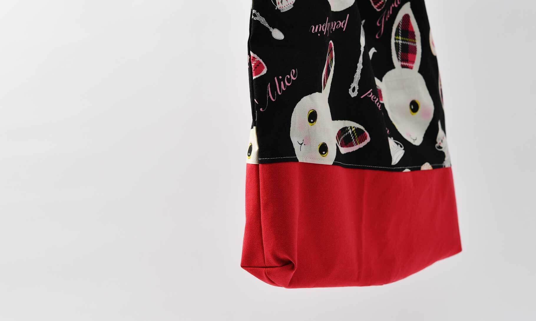 上部の生地は、ウサギがお茶会を開いているようなメルヘンで可愛い生地「9016/ウサギとティータイム」です。
