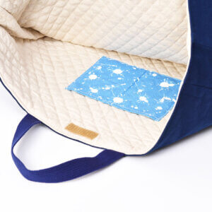 キルトの生地はやさしい肌触りで厚みがあるので、収納する荷物も安心して入れることができます。