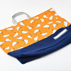 上部には、ころんとしたフォルムが可愛い鳥、キーウィの生地「9047/キウイとオレンジ」をお選びいただきました。