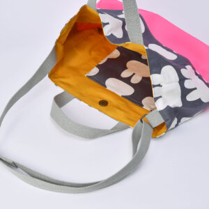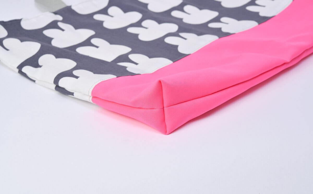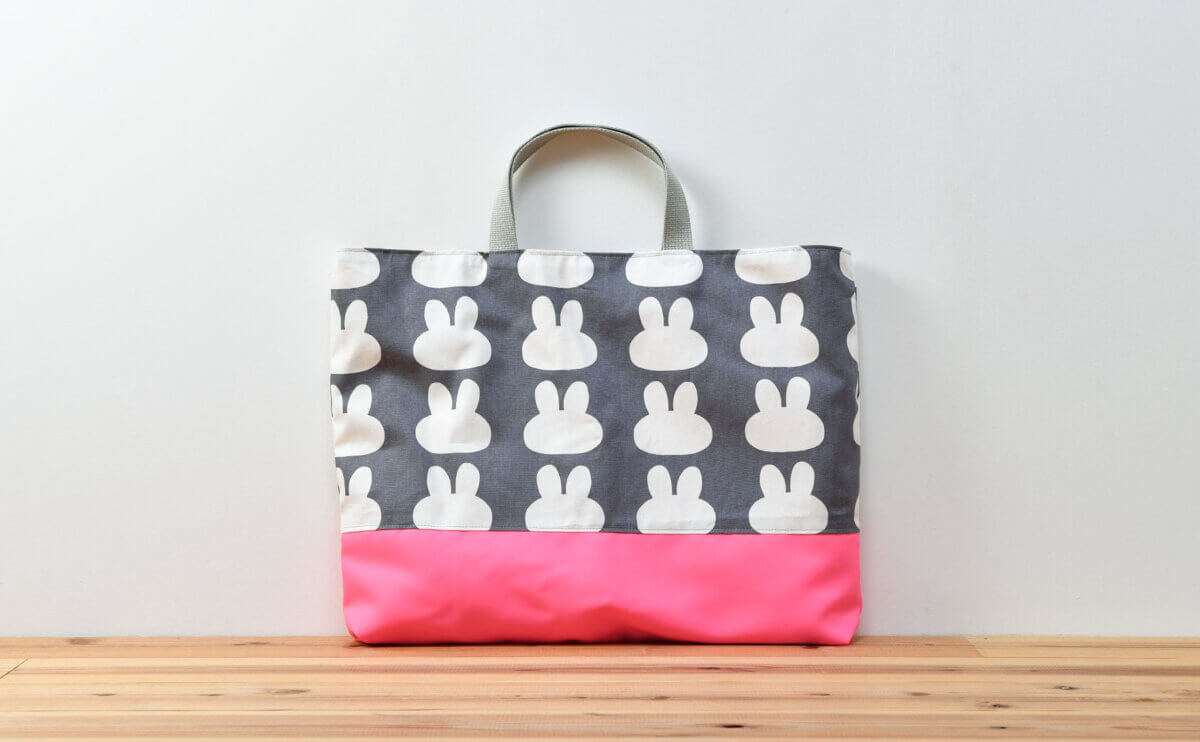 さて、次のレッスンバッグも、上部に「0627/うさぎシルエット」、下部に「9054/無地/蛍光ピンク」、持ち手に「グレー」をお選びいただきました。