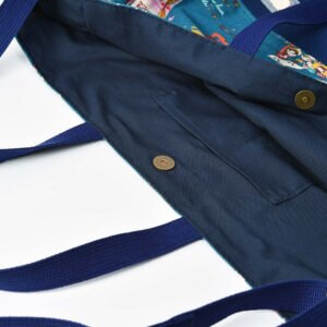 全体の生地の色味に合わせて、持ち手の色と、ショルダーの色には「ネイビー」をご選択いただきました。