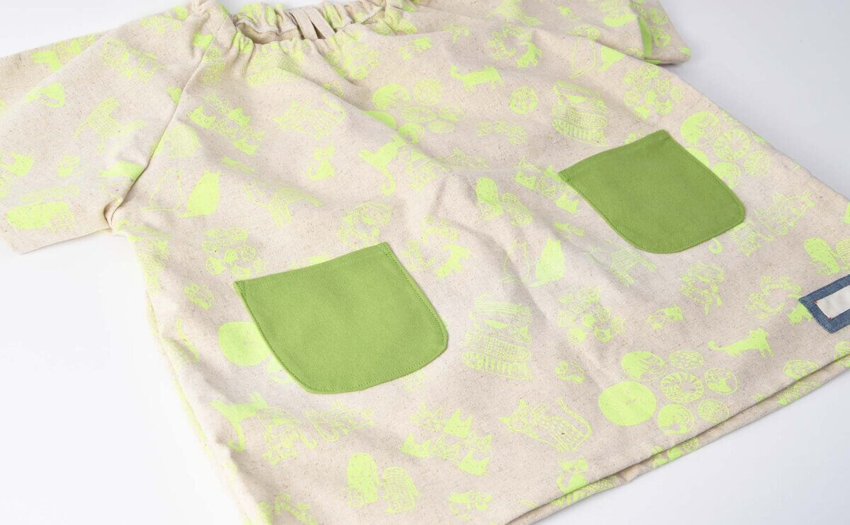 スモックの本体生地には「0623/蛍光ネコのカス入りきなり」をご選択いただきました。