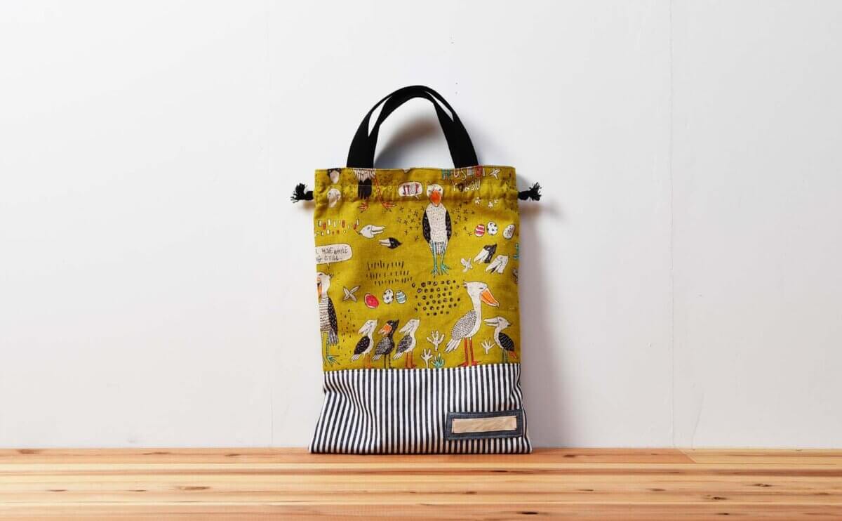 上部にお選びいただいた生地「9002/ハシビロコウ」は、カラフルな色が使われているため、無邪気でこどもらしいポップさがあります。