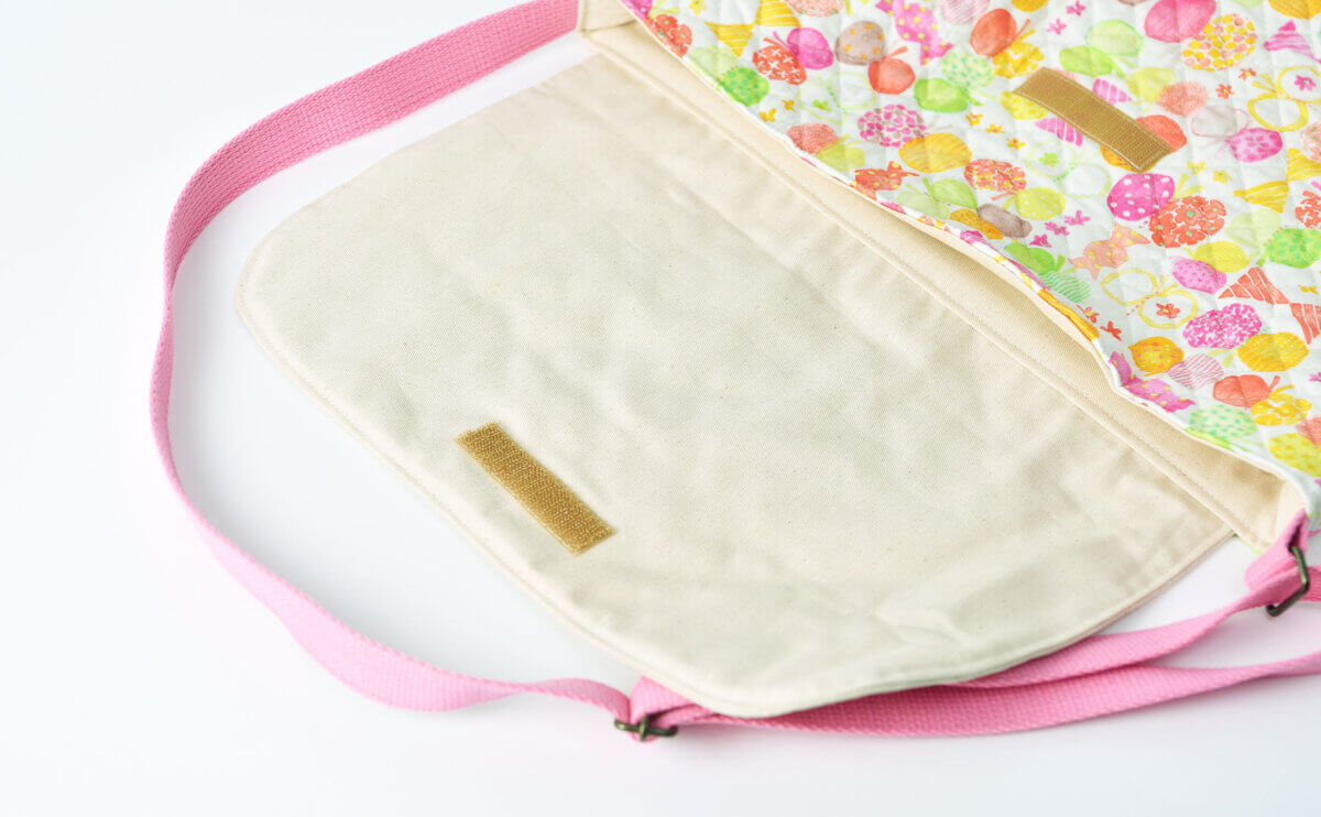 ショルダーの色には、通園バッグ本体のカラフルな生地にピッタリな「ピンク」をご選択いただきました。