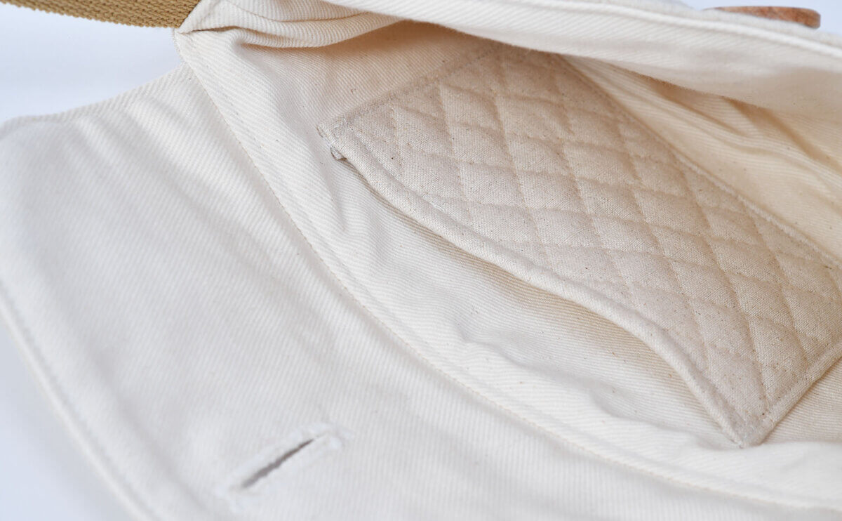今回のオーダーでは、ふたの生地と本体の生地に「9800/キルト/きなり」をお選びいただきました。