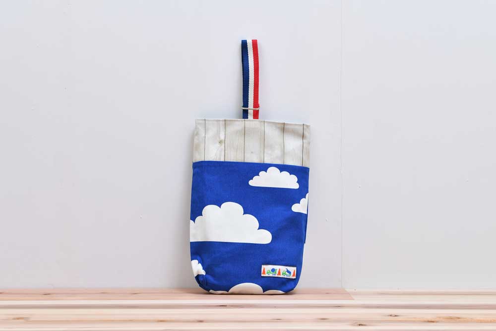青空と白い雲が素敵な生地を使用したうわばき袋