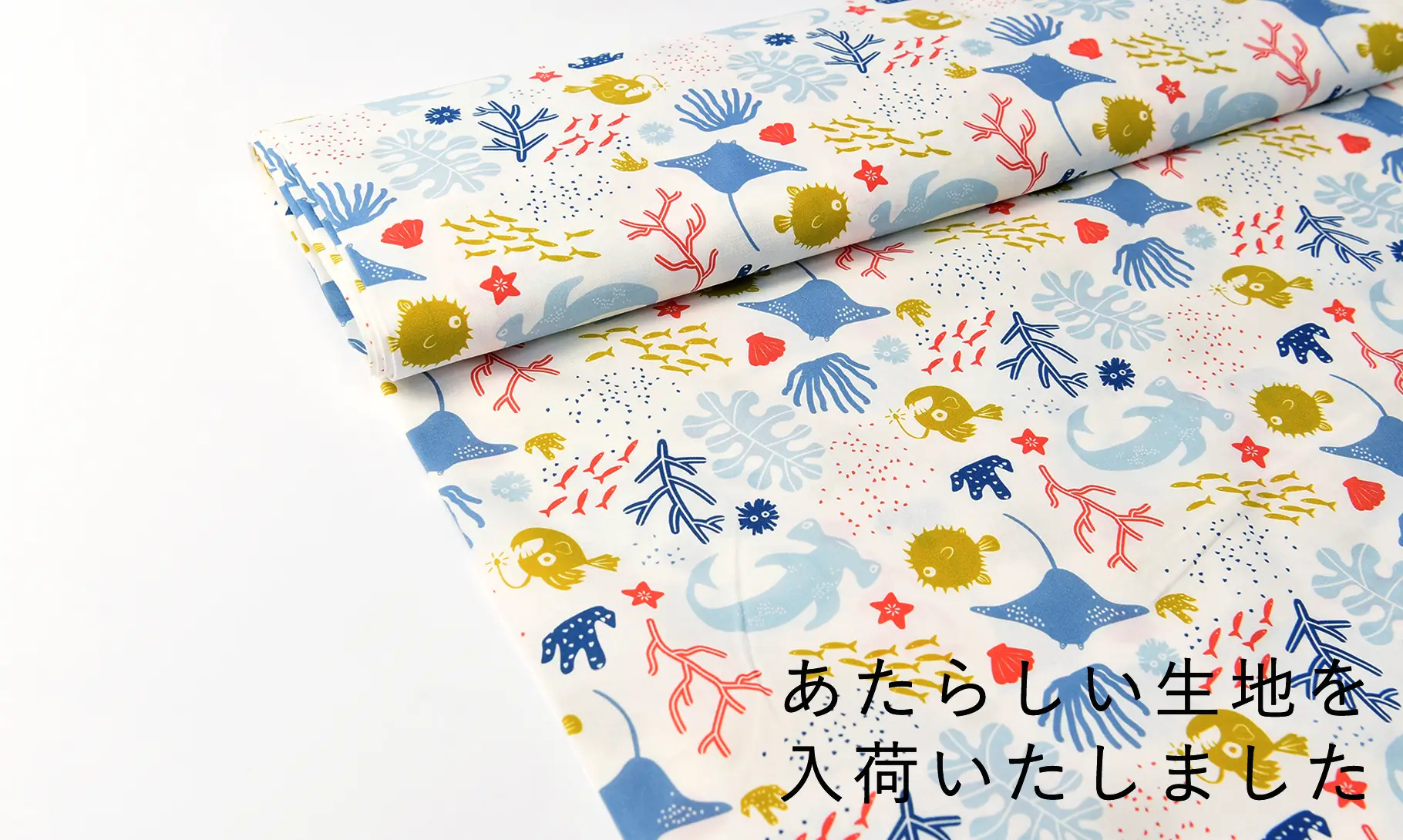 新しい生地「淡いカラーの海の生き物」を入荷しました